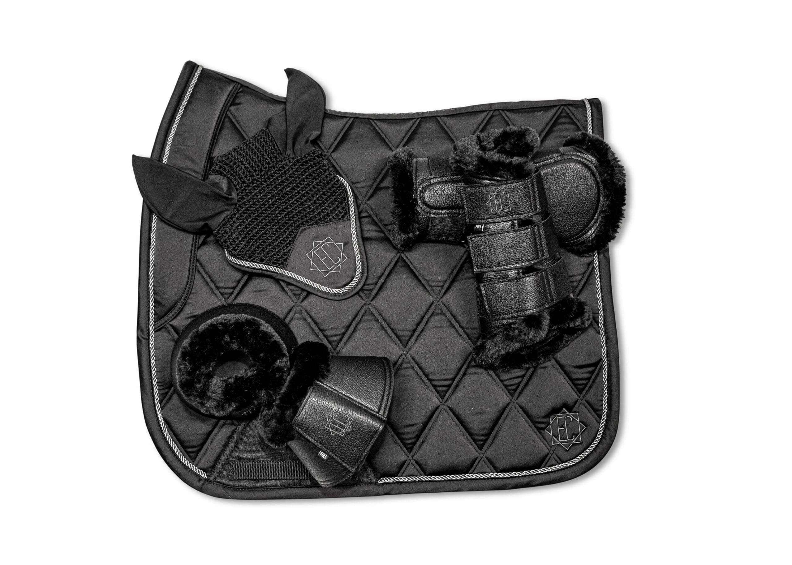 Protection and comfort while looking stylish Matte black textured leather outside Lined with soft fleece for the horse’s comfort 2 or 3 heavy duty elastic straps for durability Designed in Canada Bundle with other items of the same color for a classy head-to-toe look